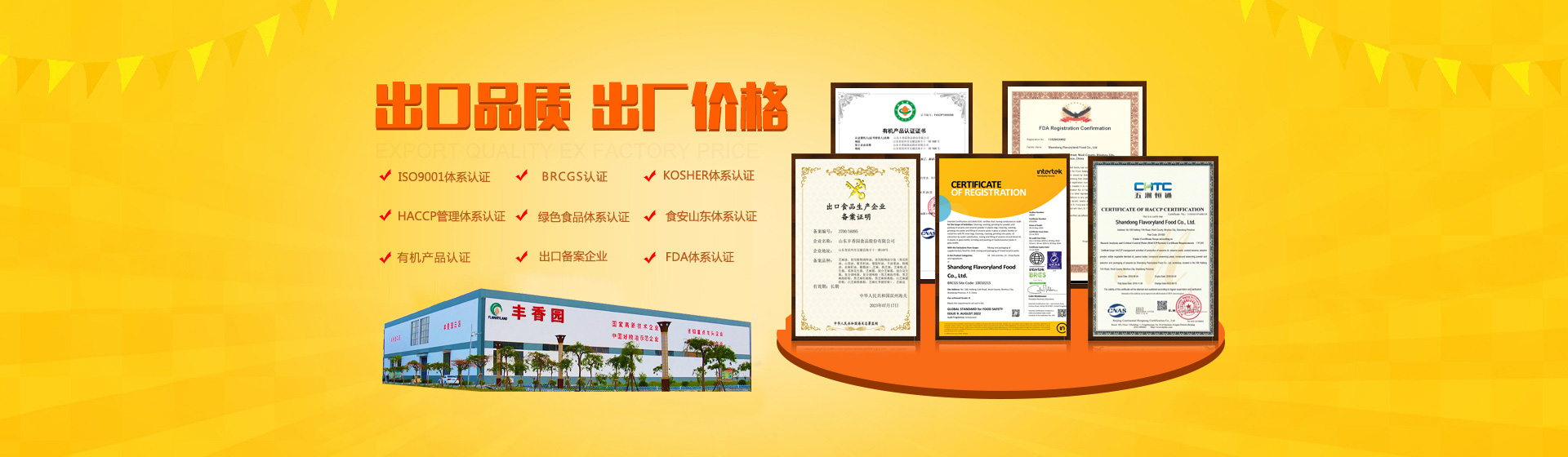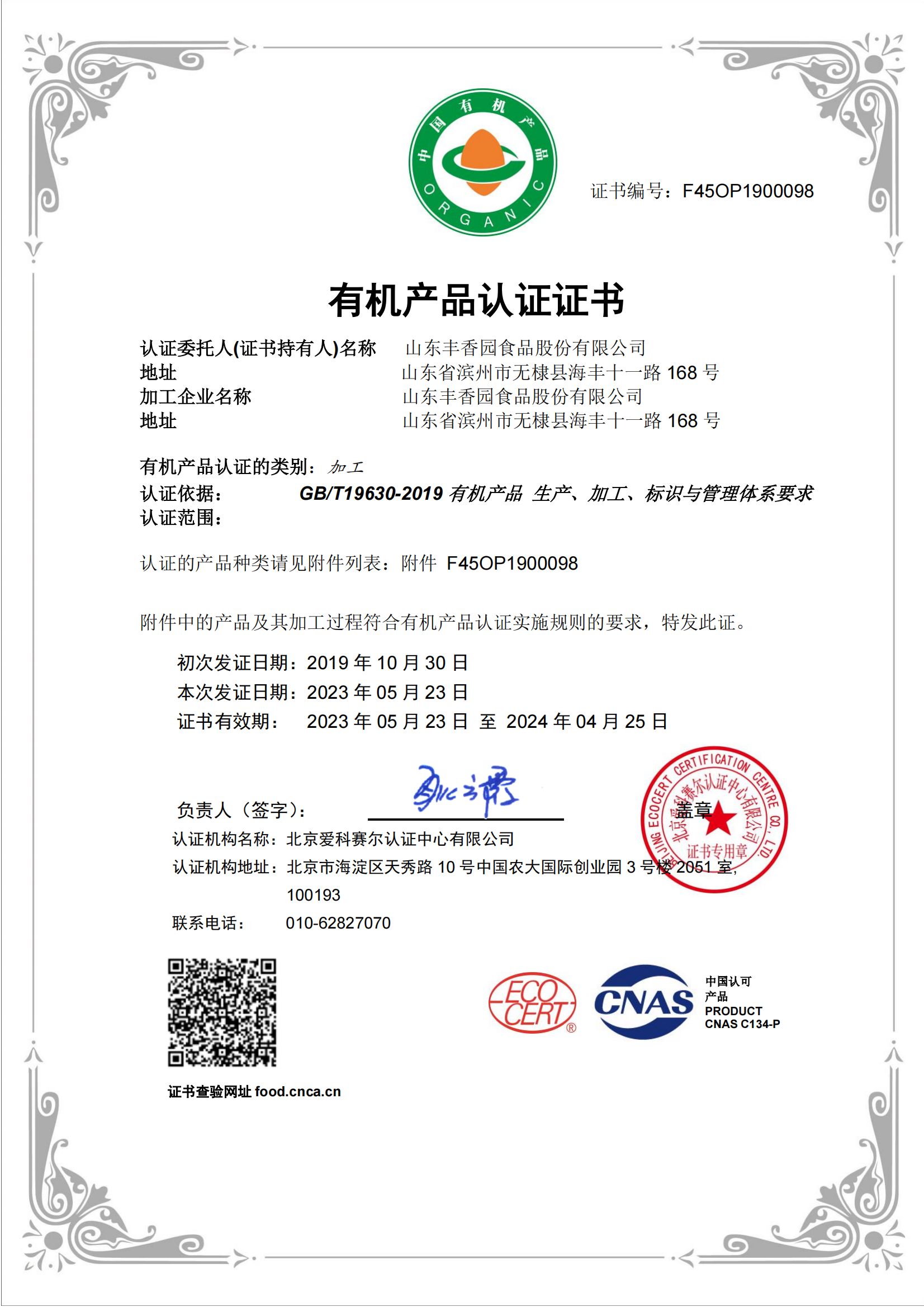 公司獲得HACCP國際質量體系認證、ISO9001:2015質量管理體系認證,產(chǎn)品獲得美國FDA認證、美國、歐盟有機食品認證、英國BRC體系認證、A級綠色食品認證、GB國標有機食品認證。