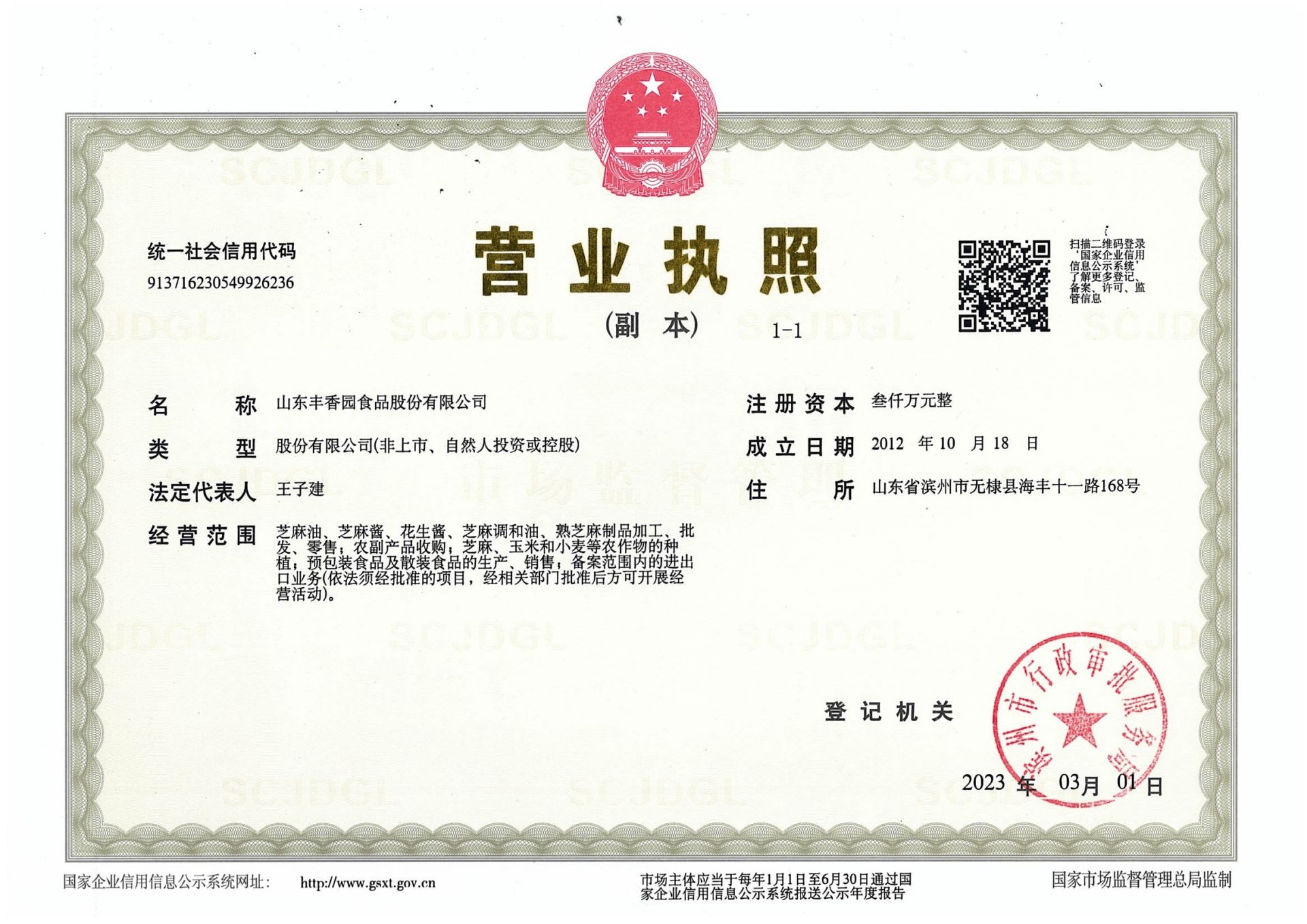 山東豐香園食品股份有限公司位于無棣縣西城工業(yè)園,成立于2012年,注冊資本3000萬元,員工60多人,年銷售收入8000多萬元,是“國家高新技術企業(yè)”、“中國好糧油”示范企業(yè)、“食安山東”示范生產(chǎn)加工企業(yè),公司集綠色、有機芝麻食品標準化、生產(chǎn)加工、研發(fā)、出口銷售為一體的山東省農(nóng)業(yè)產(chǎn)業(yè)化“重點龍頭企業(yè)”。